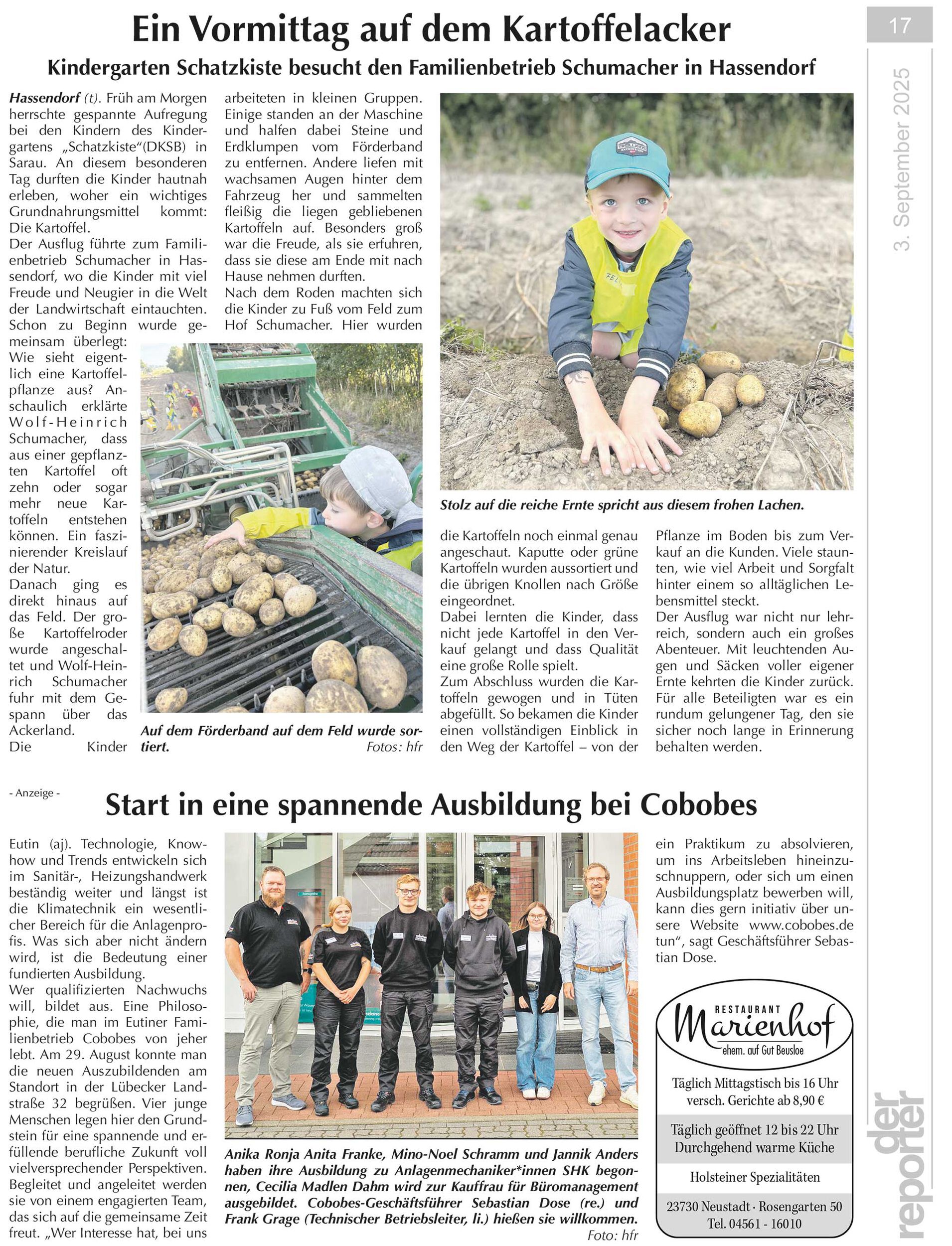 Und in das zweite Lehrjahr wurde Herr Rouven Schieskow übernommen.