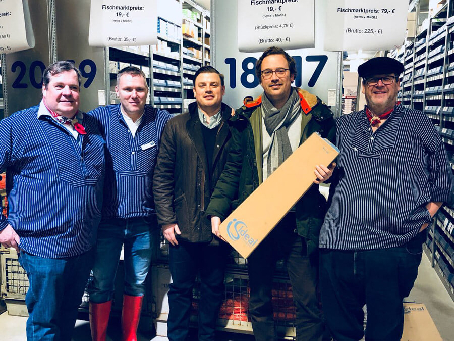 Gestern waren wir zu Gast auf dem legendären Fischmarkt von Peter Jensen. Für das leibliche Wohl sorgten Fischbrötchen mit einer Prise Mexiko. Im Anschluss begann die große Versteigerung von Sanitär- und Heizungsartikeln. Der Erlös der Versteigerung wird teilweise an ein gemeinnütziges Projekt gespendet. Daher haben wir auch eifrig mitgesteigert ...