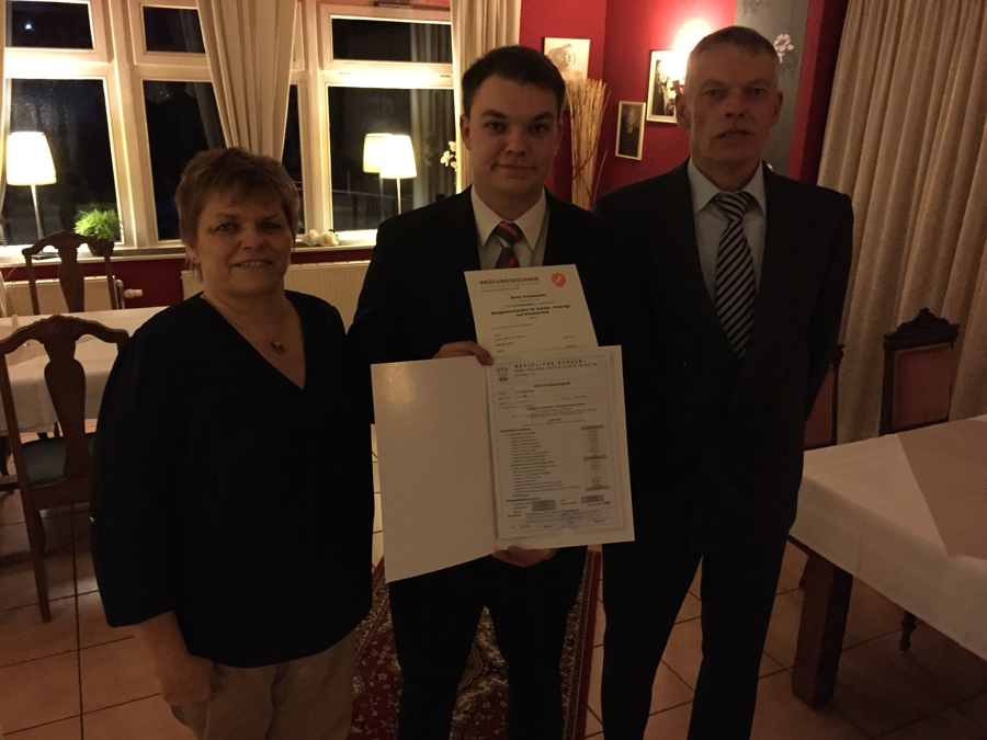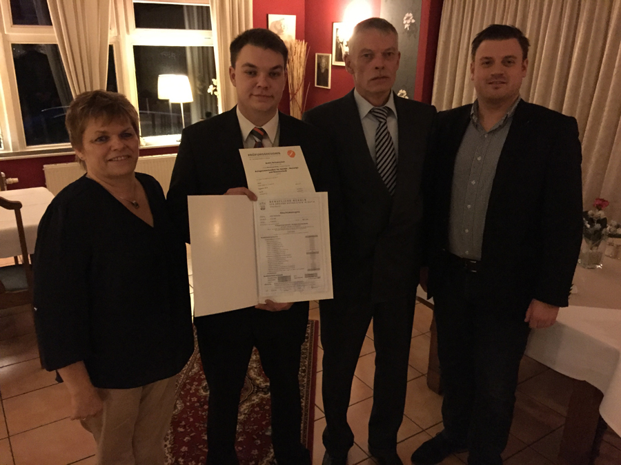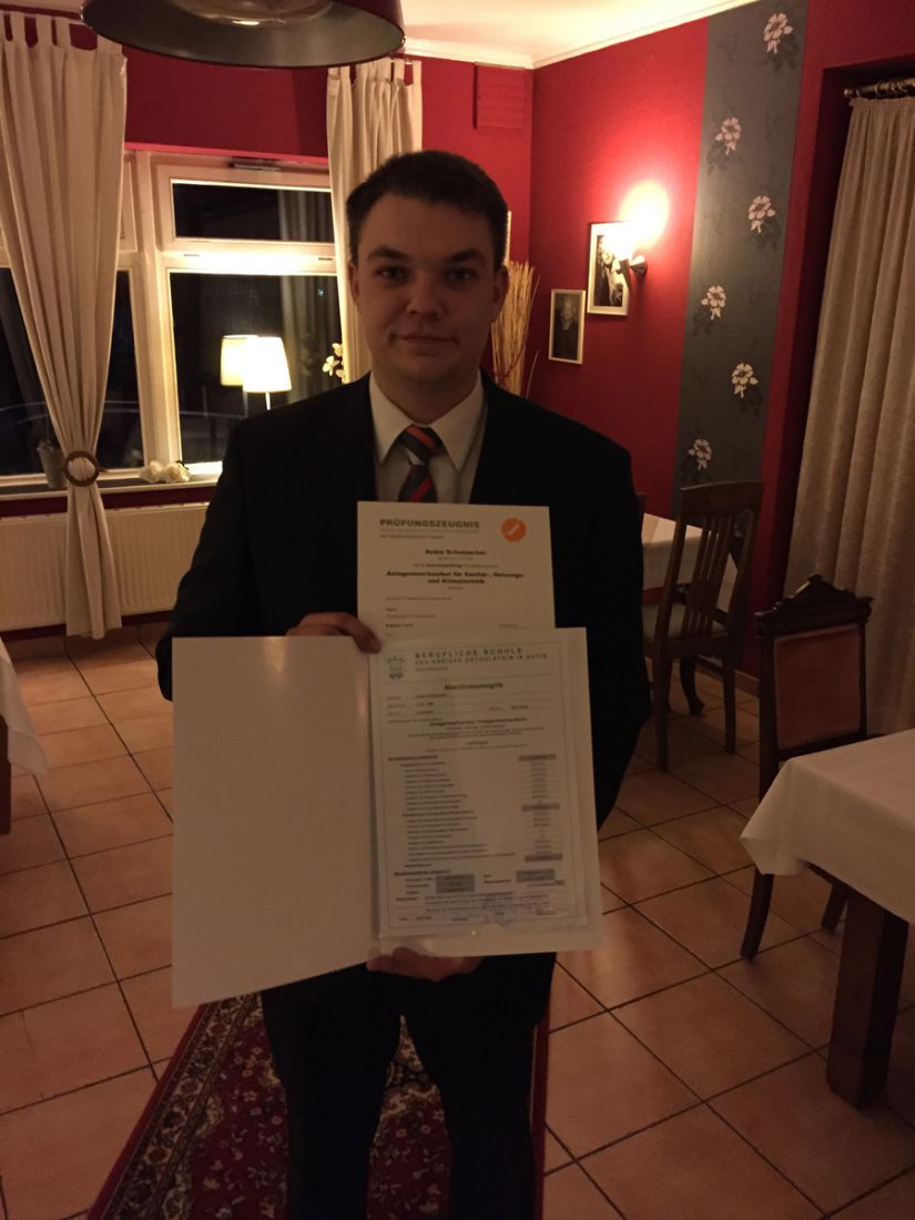 Wir gratulieren ganz herzlich unserem frisch gebackenem Gesellen Andre Schumacher aus Liethkaten. Er wurde am vergangenen Freitag, den 29.01.2016 im Selenter Hof bei der Freisprechungsfreier freigesprochen. Die Firma Cobobes ist sehr stolz auf seine Leistungen und freut sich auf die zukünftige weitere Zusammenarbeit. Außerdem wurde Herr Mats Rampoldt aus Eutin nach seiner ebenfalls bestandenen Gesellenprüfung zum 01.02.2016 eingestellt.