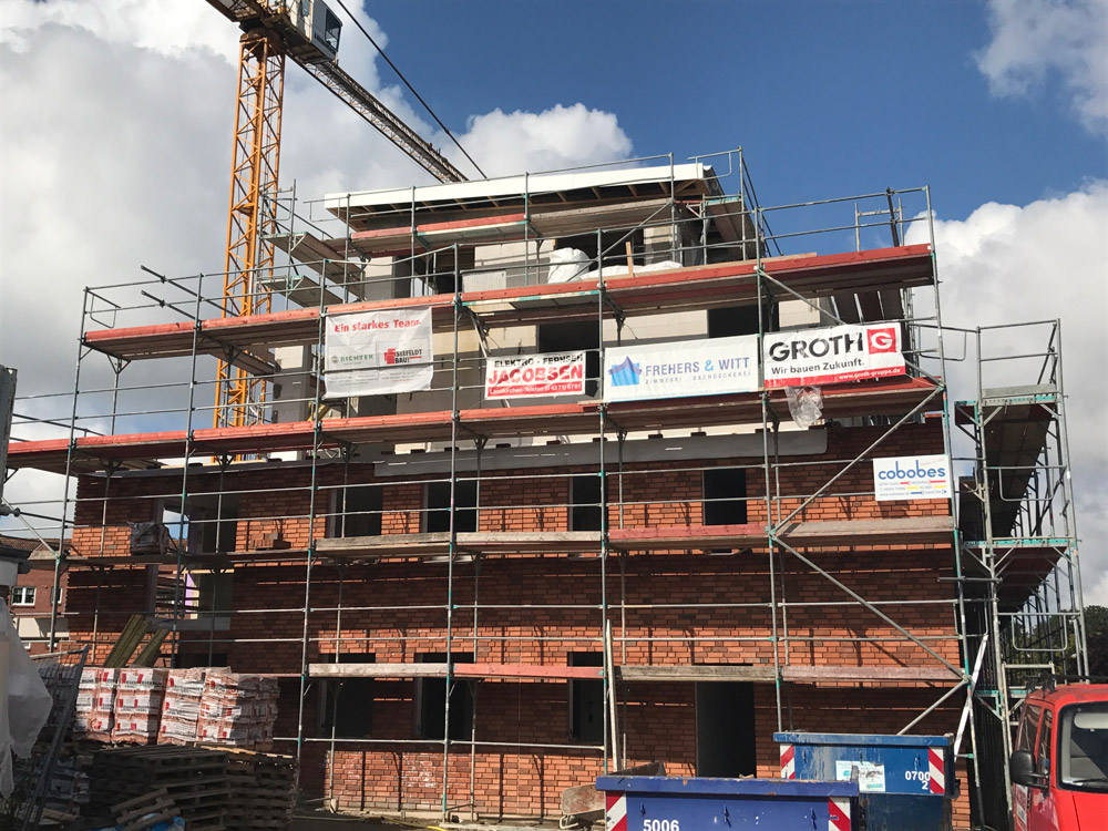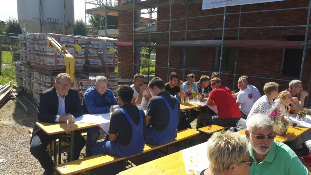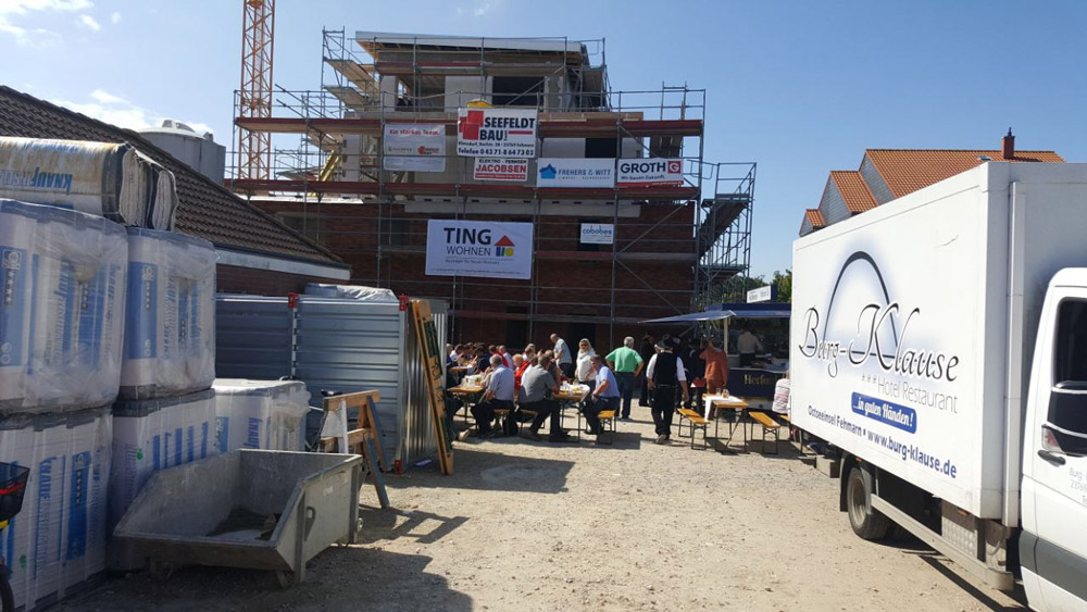 Highlight des heutigen Tages: das Richtfest vom Mehrfamilienhaus mit 16 Wohneinheiten vom Generalunternehmer Groth Bau und Bauherrn Ting Wohnen auf Fehmarn.
